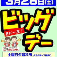 3月28日(土)はビッグデーを開催します!! お買い得商品を取り揃えて皆様のお越しをお待ちしております。 是非ご来店ください!!