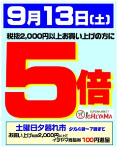 9月13日(土)は税抜き2,000円以上お買い上げのお客様にバリューポイント5倍進呈します。