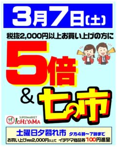 3月7日(土)はポイント5倍セールと七の市を開催します!!