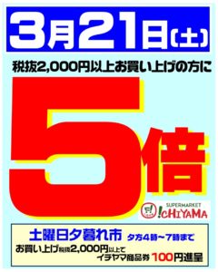 3月21日(土)はポイント5倍セール開催します。